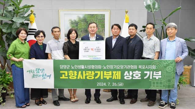 (아름다운교육신문) 담양군노인생활시설협의회(회장 하종삼)와 한국노인장기요양기관협회 목포지회(회장 홍건숙)가 고향사랑기부금 상호기부에 동참했다.