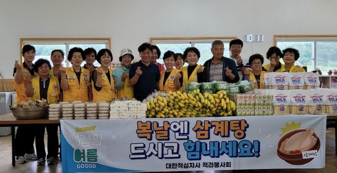 (아름다운교육신문) 대한적십자사 적라봉사회는 지난 26일, 중복을 맞아 여름철 건강 증진을 위해 취약계층 40가구에게 건강한 보양식인 삼계탕을 전달했다.