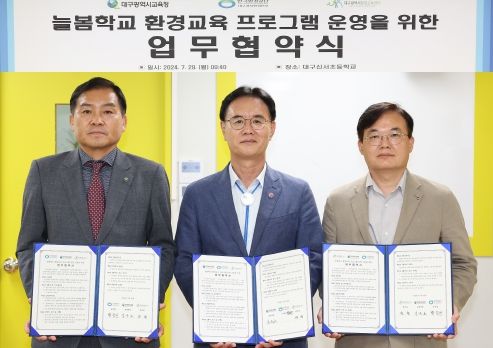 (아름다운교육신문) 대구시교육청은 7월 29일 9시 40분, 대구신서초등학교에서 한국환경공단 대구경북환경본부, 대구환경교육센터 등 2개 기관과 ‘늘봄학교 환경교육 프로그램 운영’을 위한 업무협약을 체결한다.