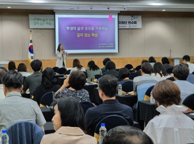 (아름다운교육신문) 경북교육청은 29일 경주시에 있는 더케이호텔경주에서 도 단위 초등 교실수업개선 지원단 110명을 대상으로 ‘학생의 삶과 성장을 지원하는 깊이 있는 학습’이란 주제로 연수를 실시했다.