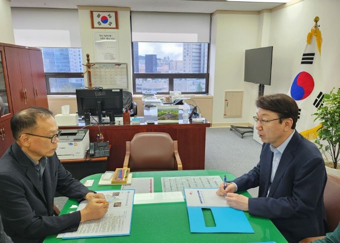 우 시장은 29일 정부대전청사를 찾아 이경훈 국가유산청 차장과 임상섭 산림청장을 잇따라 면담하고 주요 현안추진과 국가예산 사업에 적극적인 관심과 지원의 필요성을 설명했다.