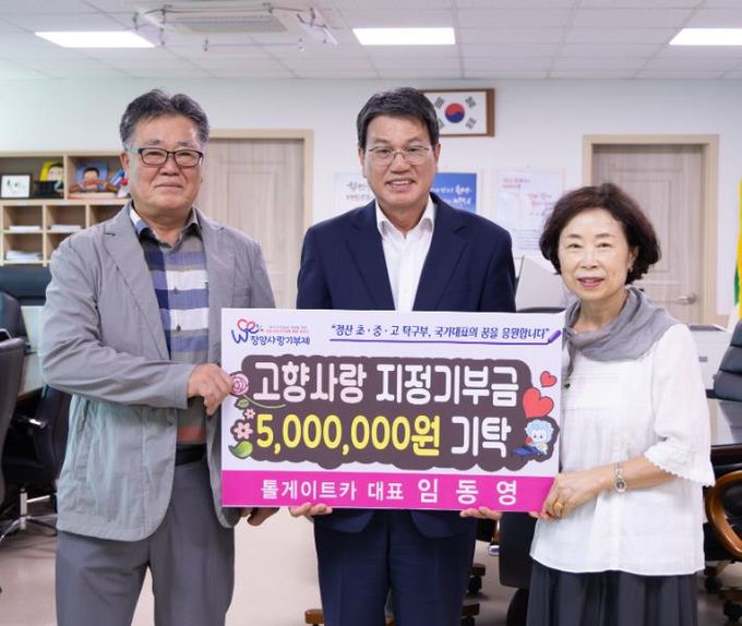(아름다운교육신문) 청양군은 임동영 대표(톨케이트카)가 지난 22일 고향사랑e음을 통해 정산 탁구부에 5백만 원을 지정기부하고 29일 군을 방문해 기탁식을 가졌다고 전했다.