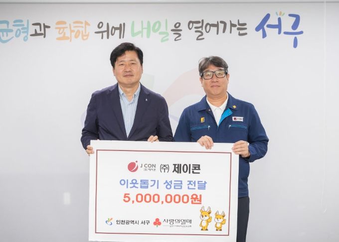 (아름다운교육신문) 인천 서구는 7월 29일, 제이콘으로부터 이웃돕기 성금 500만원을 전달받았다.