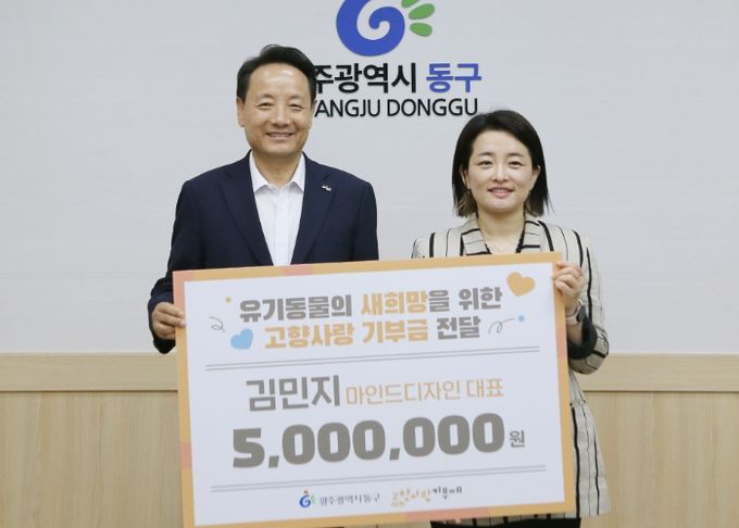 (아름다운교육신문) 광주 동구는 최근 고향사랑 기금사업 일환으로 신규 추진에 나선 유기동물 구조·보호 사업에 도움을 주고자 김민지 마인드디자인 대표가 5백만 원을 기부했다고 밝혔다.