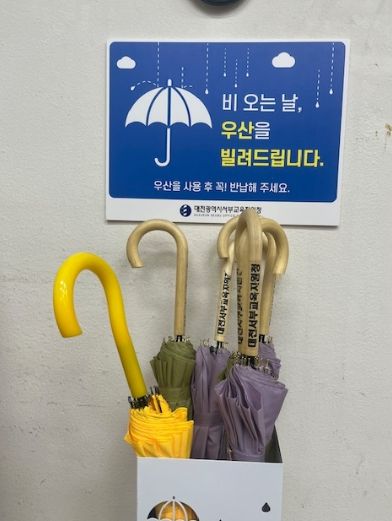 대전서부교육지원청 김필중 운영지원과장은 “올해 여름 예상치 못한 비 소식이 많고 태풍 예보가 있는 가운데, 안심 우산 서비스를 통해 민원인들과 지역 주민들에게 친절하게 다가갈 수 있도록 노력하겠다.”라고 말했다.