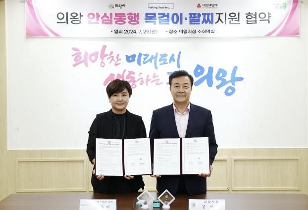 (아름다운교육신문) 의왕시는 29일 메이킹스토리와 취약계층 지원을 위한 ‘의왕 안심동행 목걸이·팔찌 지원’ 사업 업무협약을 체결했다고 30일 밝혔다.
