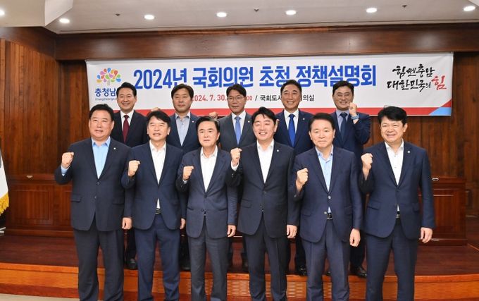 도는 30일 서울 국회도서관 소회의실에서 문진석·이재관·이정문·박수현·장동혁·복기왕·강훈식·성일종·황명선·어기구·강승규 의원과 김태흠 지사, 김기영 행정부지사, 전형식 정무부지사, 실국원장 등 30여 명이 참석한 가운데 지역 국회의원 초청 정책설명회를 개최했다.