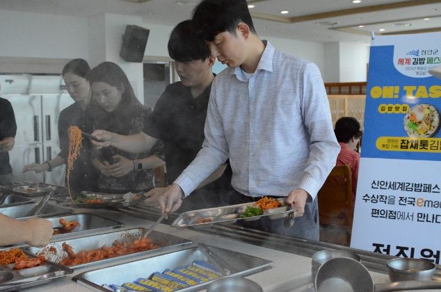 (아름다운교육신문) 신안군은 지난 4월에 치러진 2024신안세계김밥페스타 수상작을 편의점 제품으로 출시하여 7월 30일 군청 구내식당에서 전직원 시식회를 가졌다.