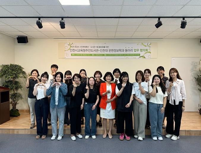 (아름다운교육신문) 인천광역시교육청주안도서관은 26일 인천대학교 문헌정보학과 재학생 2개 동아리와 ‘도서관 이용 활성화 방안’ 등을 논의하는 업무 협의회를 개최했다.