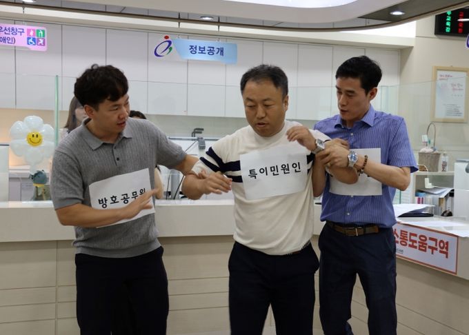 임문희 총무과장은 “앞으로도 정기적인 교육과 모의훈련을 통해 민원 담당 공무원과 주민을 보호할 수 있는 안전한 민원실을 만들기 위해 최선을 다할 것”이라며 “민원인과 공무원이 서로 신뢰하고 존중하는 문화가 정착되길 바란다”라고 말했다.