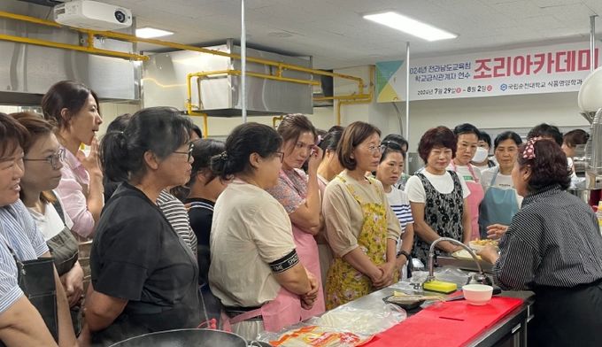 (아름다운교육신문) 전라남도교육청은 7월 29일부터 8월 2일까지 5일간 순천대학교 식품영양학과에서 영양교사·영양사, 조리사, 조리실무사 170명을 대상으로 ‘2024. 학교급식관계자 조리 아카데미’ 연수를 실시한다.