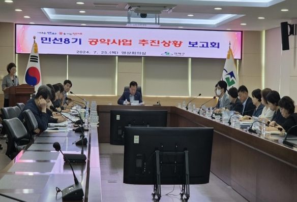 주석수 연제구청장은 “이번 보고회는 민선8기 후반 공약 이행에 영향을 줄 수 있는 대내외적인 요인을 파악하고 대책을 마련하는 자리다”라며, “구민과 약속한 공약사업이 차질 없이 추진되도록 물망초심(勿忘初心)의 자세로 최선을 다하겠다”라고 말했다.