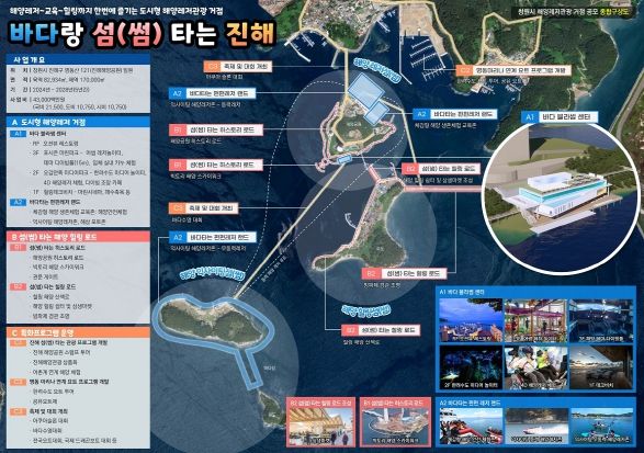 첫 번째는 도시형 해양레저 거점 조성을 목표로 바다블라썸 센터와 바다타는 펀펀레저랜드를 조성하여 4계절 해양레저가 가능하고, 전시 중인 진해함을 활용하여 선박탈출, 생존수영이 가능한 해양 안전 체험 시설 등을 계획했다.