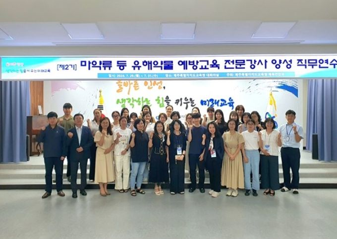 (아름다운교육신문) 제주특별자치도교육청은 각급학교 교원 및 전문직 49명을 대상으로 7월 29일부터 7월 31까지 3일간 (제2기) 마약류 등 유해약물 예방교육 전문강사 양성 직무연수를 운영하고 있다.