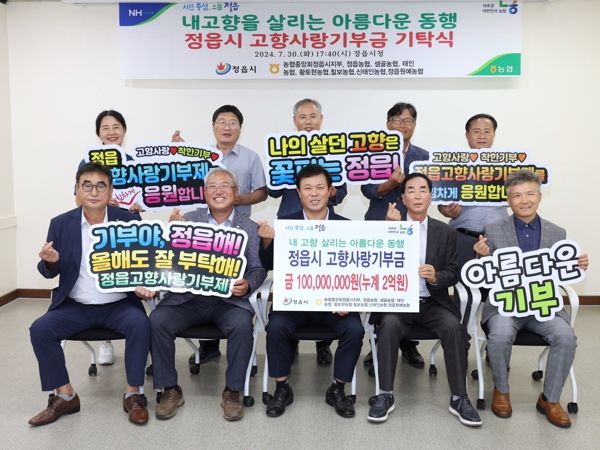 (아름다운교육신문) 정읍시의 7개 농협이 자발적으로 진행한 모금 캠페인을 통해 총 1억원의 고향사랑기부금을 모금했다.