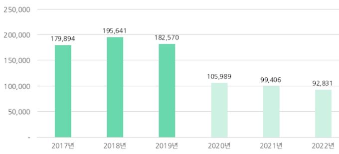 먼저, ‘코로나19 전후의 법정감염병 발생 현황’을 조사한 결과는 전수감시 중인 제1~3급 감염병의 전체 코로나19 전후 발생 현황을 각 3년간의 평균으로 비교할 경우, 코로나19 전(2017∼2019년) 평균 186,035건 대비 코로나19 후(2020∼2022년) 99,409건으로 46.6% 감소했다.