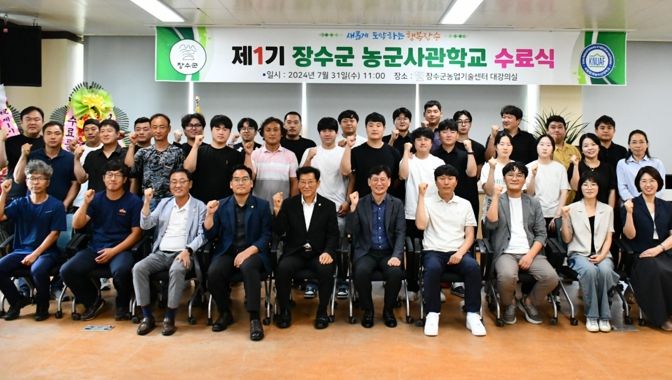 (아름다운교육신문) 장수군은 지난 31일 농업기술센터에서 대강의실에서 미래 농업을 이끌어갈 스마트팜 전문 인력을 양성하는 ‘농군사관학교 1기 수료식’을 개최했다.
