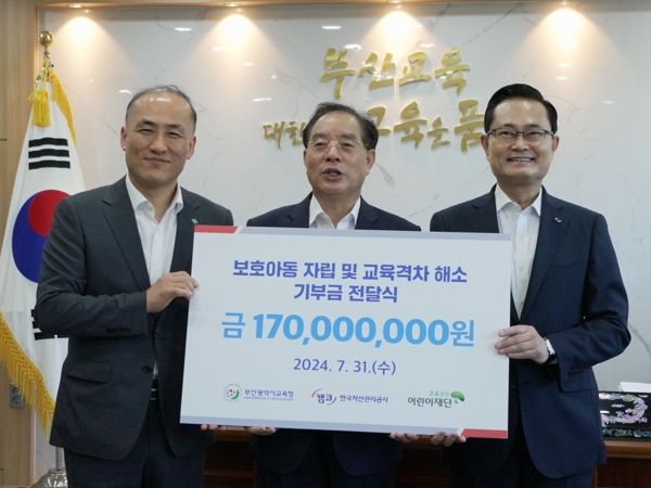 부산교육청은 이날 전달받은 교육기부금을 부산지역 보호아동의 생활공간인 아동양육시설, 부산오륜학교 등에 지원할 예정이다.
