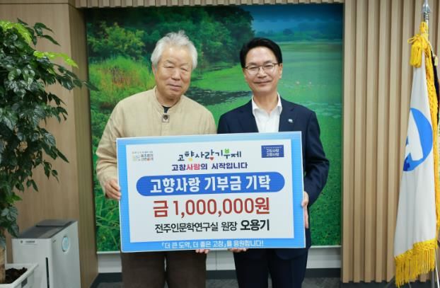(아름다운교육신문) 오용기 전주인문학연구실 원장이 31일 고창군에 고향사랑기부금 100만원을 기탁했다.
