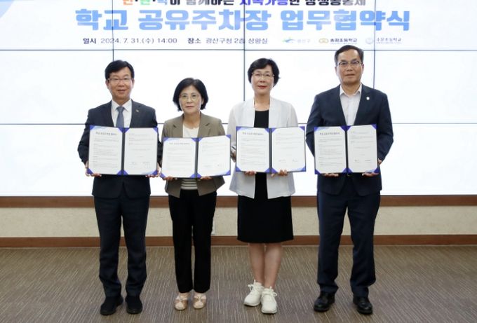 박병규 광산구청장은 “이번 업무협약은 주차 문제 해결을 위한 작은 사회적 대화의 첫 성공 사례가 될 것”이라며 “학교와 마을 모두에게 편리하고 안전한 공유주차장이 되도록 시설 개선 등 남은 준비를 철저히 챙기는 한편, 더 많은 상생 시도와 실천이 이어지도록 더욱 노력하겠다”고 밝혔다.