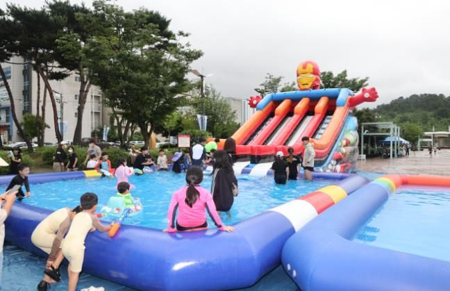 어린이 물놀이장은 대형슬라이드 2개와 풀장 3개를 갖춘 에어바운스 수영장으로 구성되어 있고 몽골텐트와 그늘막 등 편의시설을 갖췄다.