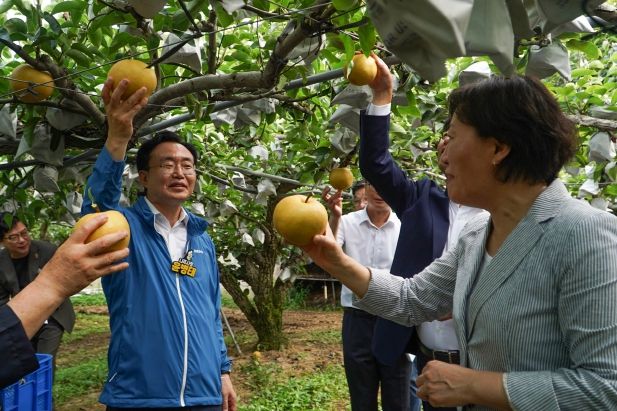 아울러 윤 시장은 “더운 날씨에도 고품질 나주배 생산을 위해 노력하고 계신 농가에게도 감사하다”며 “나주배 명성을 되찾기 위해 적극 노력하고 있는 만큼 농가에서도 자부심을 갖고 품질 좋은 배를 생산해 주시기 바란다”고 전했다.