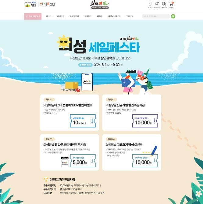 이번 행사는 의성장날에서 진행되는 프로모션 행사 중 가장 큰 할인 행사이며, 8월 1일부터 두 달간 진행한다.