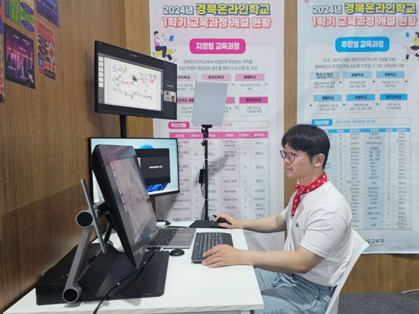 (가칭)경북온라인학교는 지난 3월부터 경산고등학교 내에 임시 스튜디오 10실을 구축해 시범 운영하며, 교육과정 편성과 운영, 학교 간 학사일정 조정 등 원활한 수업 지원 체계를 마련했다.