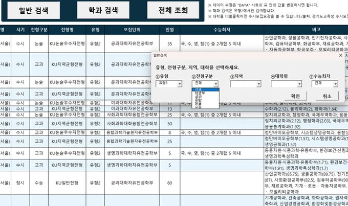이에 경북진학지원센터는 현장의 요구를 수용하여 수도권 주요 대학과 지방거점국립대학, 그 밖에 무전공을 선발하는 전국 모든 대학의 자료를 포함하는 무전공 모집 단위 검색 프로그램 ‘경북 무전공 내비게이터’를 전국 최초로 개발했다.