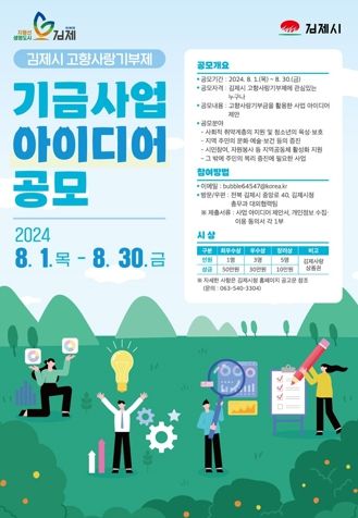 공모 관련 자세한 사항은 김제시 홈페이지 공고 게시판을 통해 확인하면 된다.