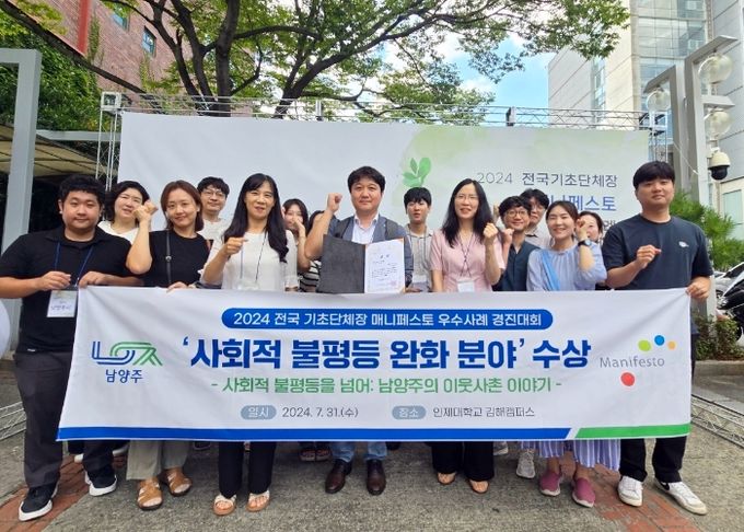 (아름다운교육신문) 남양주시는 지난달 31일 ‘2024년 전국 기초단체장 매니페스토 우수사례 경진대회’에서 사회적 불평등 완화 분야 우수상을 수상했다고 1일 밝혔다.