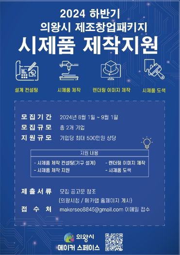 (아름다운교육신문) 의왕시 메이커 스페이스는 ‘2024년 상반기 의왕시 제조창업패키지 시제품 제작 지원사업’을 성공적으로 마쳤다고 밝혔다.