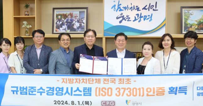 이는 광명시가 법적 요구사항을 준수하고 조직 내 부패와 비리를 예방하며 윤리적 경영을 실현하기 위해 추진한 결과다. 지자체가 ISO 37301 인증을 획득한 건 전국 최초이다.