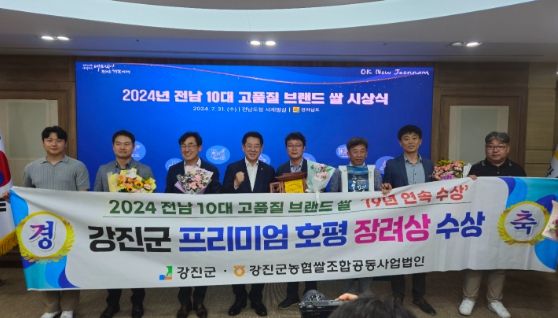강진원 강진군수는 “프리미엄 호평이 2006년부터 2024년까지 19년 연속 전남 10대 고품질 브랜드 쌀 수상을 하게 되어 기쁘고 영광스럽다”며 “앞으로도 최고의 명품 쌀로 자리매김하기 위해 최선을 다하겠다”고 밝혔다.