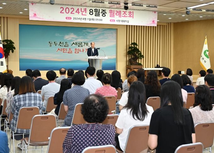 (아름다운교육신문) 동두천시는 1일, 시청 대회의실에서 남정주(現 동두천시 건축사회 회장) 명예시장과 함께 8월 중 직원 월례조회를 개최했다.