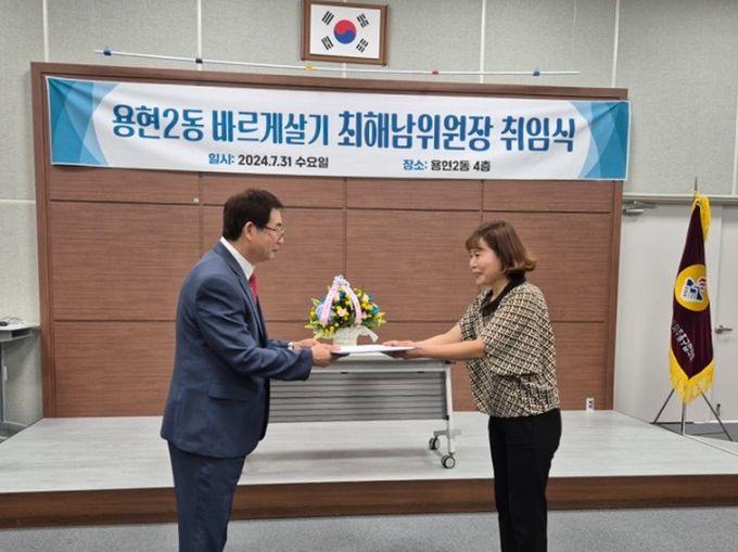 이영훈 구청장은 “앞으로 용현2동 바르게살기운동위원회가 지역사회 화합을 주도해 살기 좋은 마을을 만드는 데 중추적 역할을 하길 기대한다.”라고 말했다.