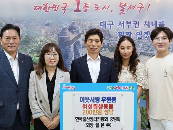 (아름다운교육신문) 대구 달서구가 지난 30일 한국출산장려진흥회 중앙회로부터 관내 여성 취약계층 주민들에게 지원해달라며, 200만원 상당의 여성보건용품을 기탁받았다.