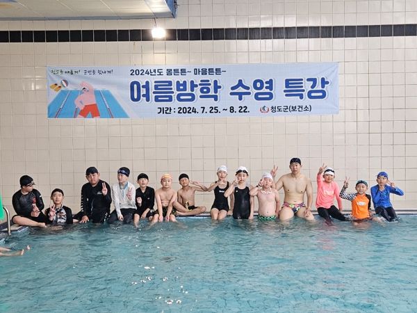 청도군은 여름방학기간에 관내 학생들의 건강증진을 위하여 시간대별 4개의 반으로 나누어 수영특강을 실시하며, 학생들에게 안전교육과 더불어 자신감을 심어주는 수영프로그램을 운영한다.