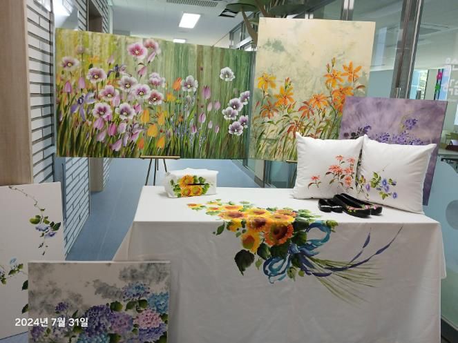 천아트는 각종 직물 소재에 직물 전용 물감으로 야생화나 식물을 그리는 작품 활동으로 최근 조성된 들꽃학습원 ‘들꽃 갤러리’의 첫 전시작으로 선정됐다.