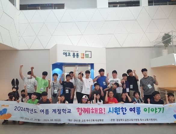 (아름다운교육신문) 경상북도김천교육지원청 특수교육지원센터에서는 7월 30일 에코롱롱큐브에서 중·고등학교 특수교육대상학생 30명을 대상으로 에너지 패러다임의 변화를 이해하고 미래 에너지에 대한 상상을 넓힐 수 있는 탄소중립 체험활동을 실시했다.