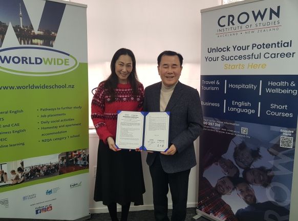 크라운 사립기술대학은 뉴질랜드에서 가장 규모가 크고 오래된 교육기관 중 하나로, 영어 교육을 포함한 다양한 직업 교육 프로그램을 제공하는 기관이며, UP EDUCATION은 직업 교육과 훈련, 고등 교육, 온라인 교육 등을 포괄하는 교육 그룹으로 알려져 있다.