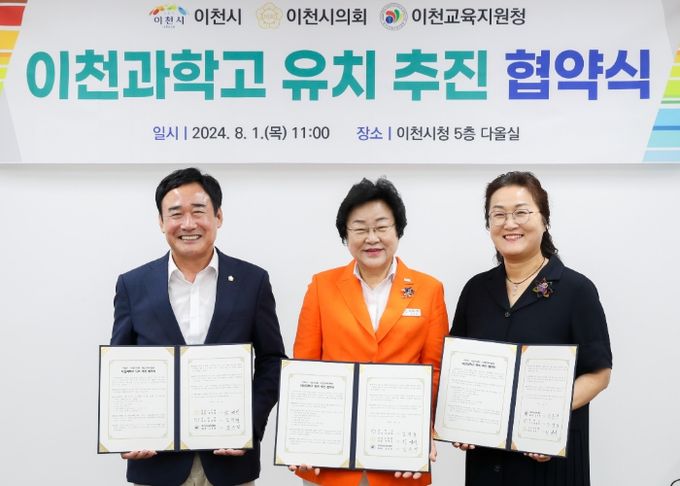(아름다운교육신문) 이천시는 지난 4월 경기도교육청의 과학고 신규 지정 계획 발표에 따라 오는 1일 시청 5층 다올실에서 이천시의회, 이천교육지원청과 이천과학고 유치 추진을 위한 협약을 체결했다.