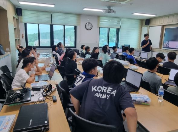 초등은 7.29.부터 7.30.까지 총 24차시, 중등은 7.29.부터 7.30.까지 총 10차시 일정으로 태안교육지원청 종학학습센터 2층과 3층의 영재교육 학습실에서 개별 노트북을 갖고 다양한 인공지능 체험과 실습을 실시했다.