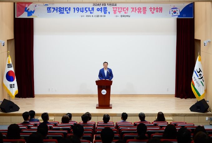 (아름다운교육신문) 서귀포시는 2일 서귀포시청 문화강좌실에서 직원 200여 명이 참석한 가운데 8월 직원조회를 개최했다.