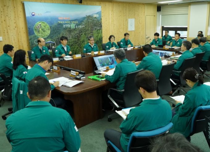 임상섭 산림청장 주재로 열린 이날 회의에서는 산림사업 현장을 관리하는 소속기관장 등 관계관 30여 명이 영상회의로 참석해 폭염 단계별 대응요령을 공유하고 온열질환 초기증상 발생 시 응급조치 체계를 마련했다.