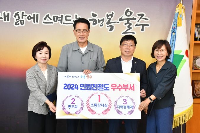 울주군은 이번 조사 결과를 바탕으로 친절도 우수부서로 선정된 소통감사실(1위), 총무과(2위), 지역경제과(3위)를 대상으로 이날 시상식을 가졌다.
