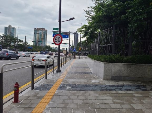 이곳은 구가 심혈을 기울여 추진 중인 ‘송파대로 명품거리 조성사업’의 시작점이지만, 왕복 10차로에 어울리지 않는 협소한 보행길이 조성돼 있었다. 십여 년 전 도로확장공사로 인해 넓었던 인도가 한 차로만큼 폭이 줄어들면서 보행자들은 통행에 많은 불편을 겪어왔다.