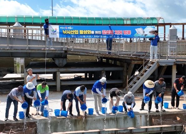(아름다운교육신문) 장흥군은 최근 낚시산업 활성화 및 해양생태환경 복원을 위해 회진면 노력항 일대에 감성돔 치어 20만 미를 방류했다.