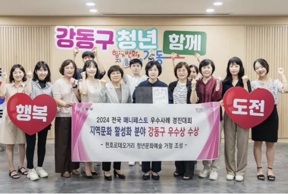 (아름다운교육신문) 강동구는 ‘2024년 전국 기초단체장 매니페스토 우수사례 경진대회’에서 지역문화 활성화 분야 우수상을 수상했다고 밝혔다.