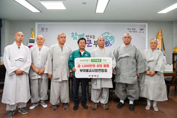 (아름다운교육신문) 부여불교사암연합회(회장 정덕스님)은 지난 1일 부여군청을 찾아 호우 피해 이재민에게 전달해달라며 1,000만 원 상당 물품을 기탁했다.